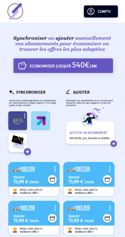 - Rendre le parcours utilisateur fluide de la synchronisation jusqu'à la recommandation d'offre